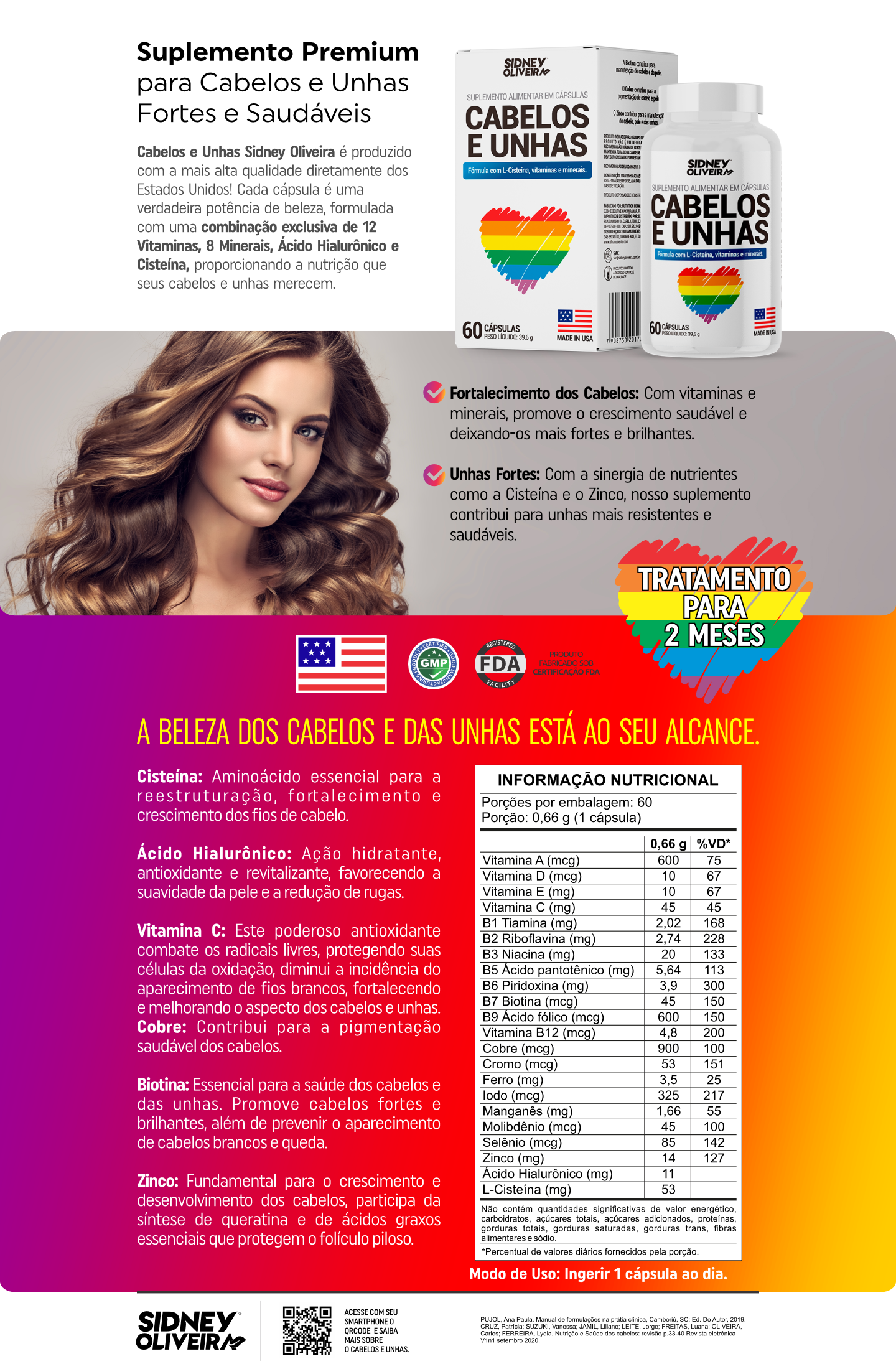 Cabelos E Unhas Made In Usa 60 Cápsulas Sidney Oliveira Brinde Grátis