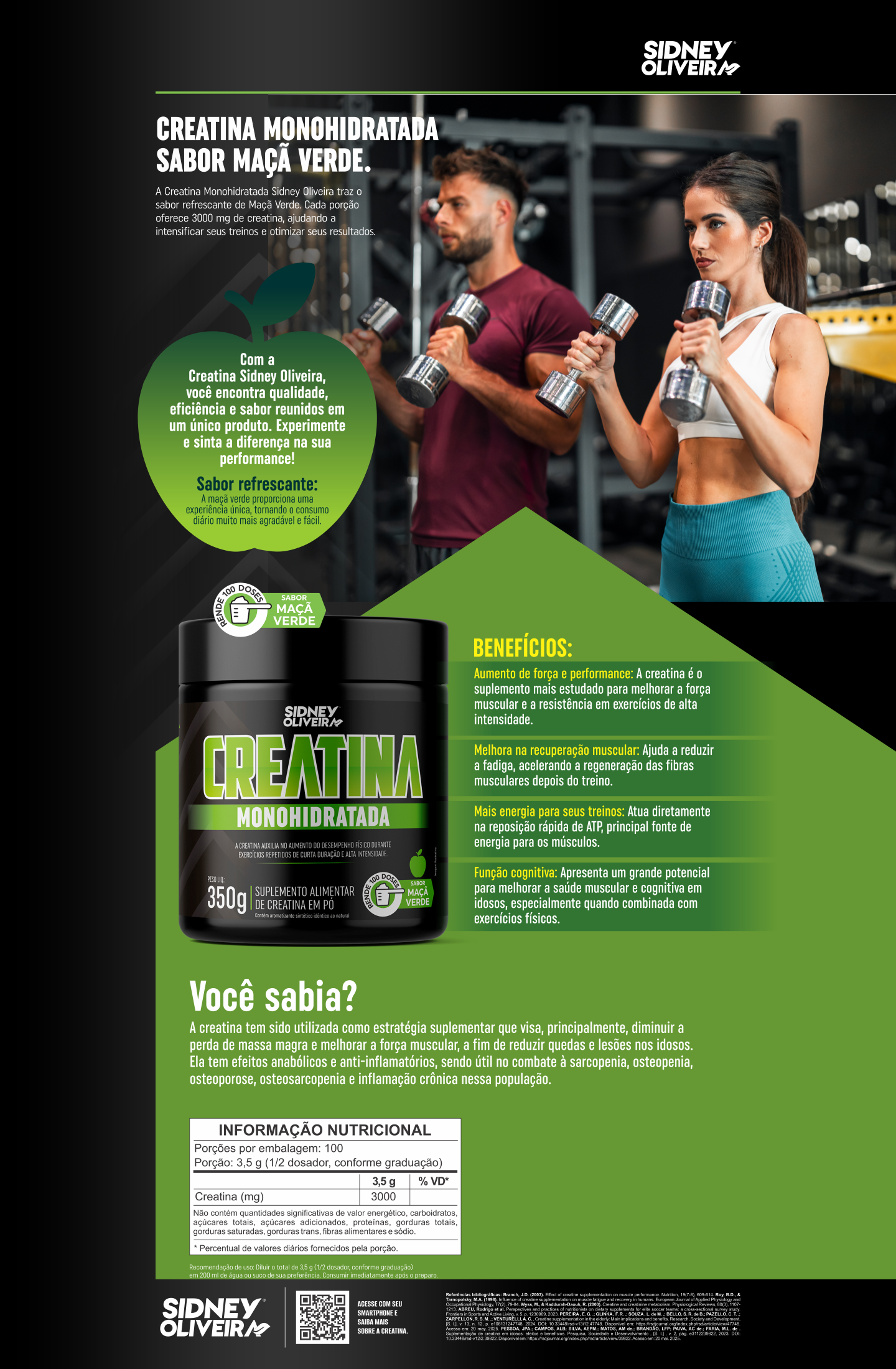 Creatina Monohidratada Sabor Maçã Verde 350G Sidney Oliveira