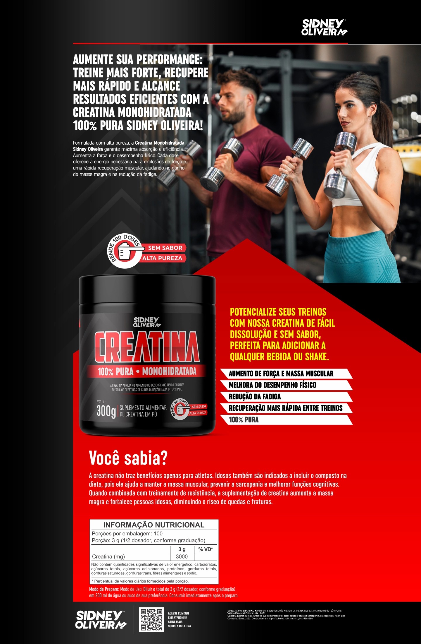 Creatina Monohidratada 100% Pura 300G Sidney Oliveira