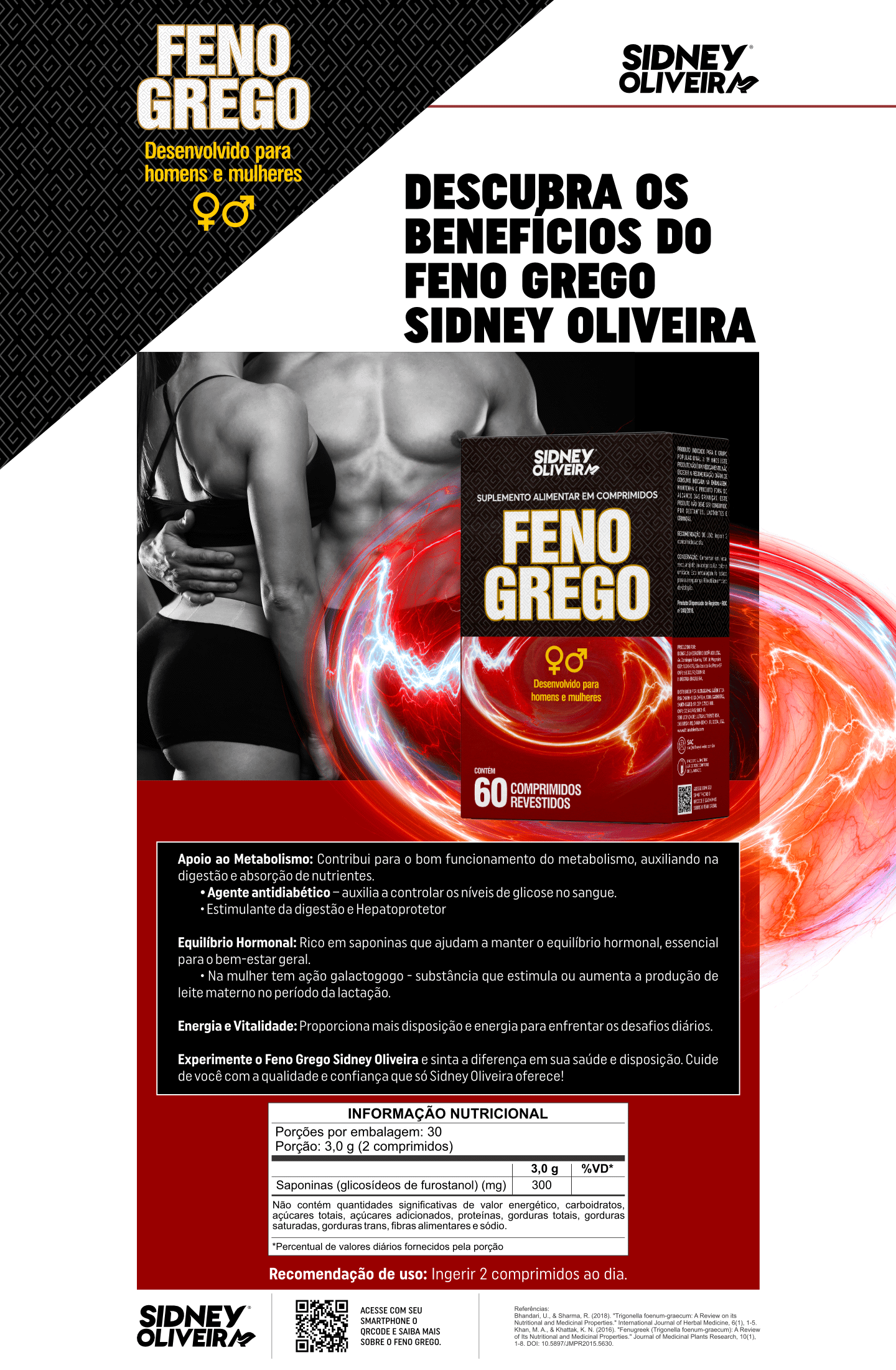 Composição: Saponinas (extrato de semente de feno grego – Trigonella foenum – graecum L.), estabilizantes: celulose microcristalina, carbonato de cálcio, hipromelose e polietilenoglicol, polivinilpirrolidona e antiumectantes: estearato de magnésio e dióxido de silício. NÃO CONTÉM GLÚTEN.