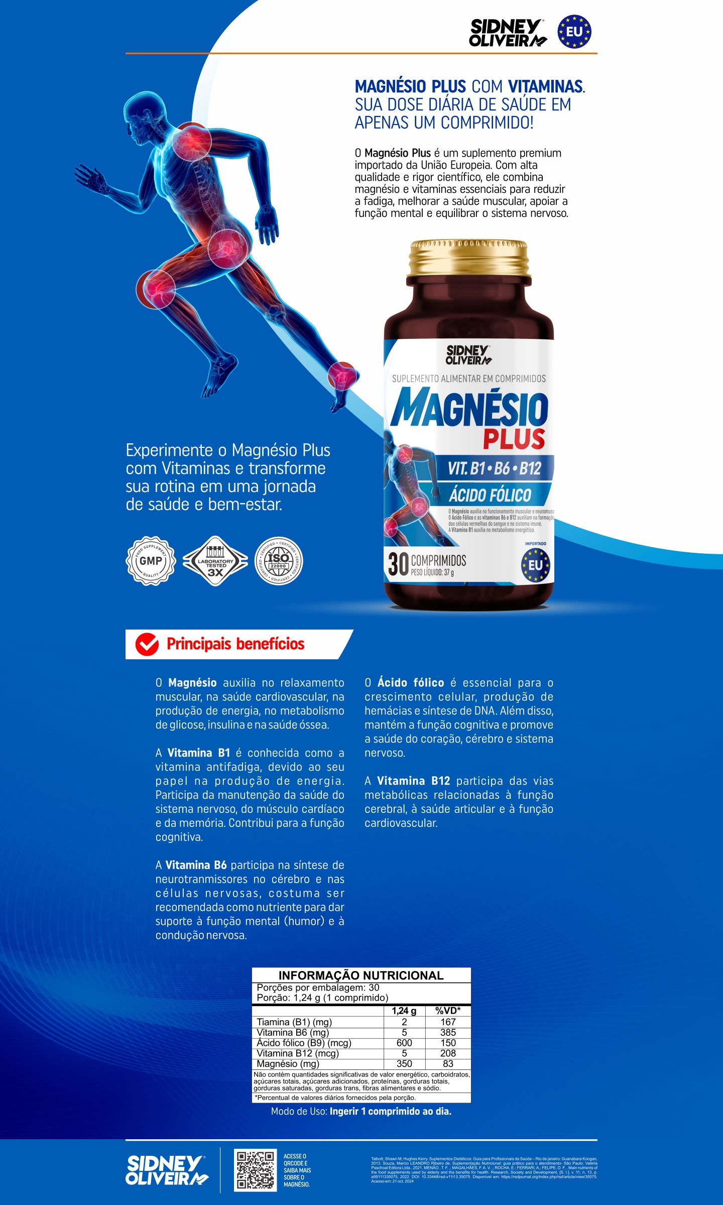 Magnésio Plus Com Vitaminas 30 Comprimidos União Europeia Sidney Oliveira